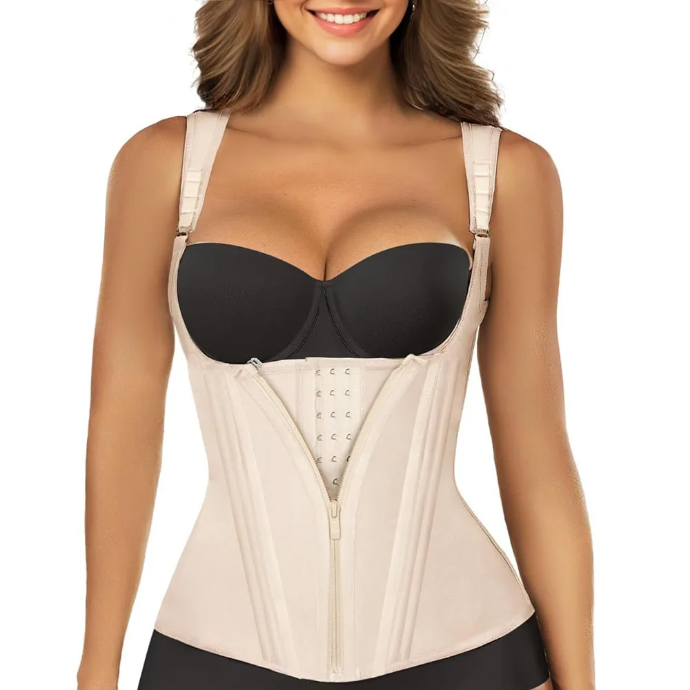 1pc Plus Size Adjustable Zipper Waist Trainer Corset with Boning, Double Layer Double Compression Be...