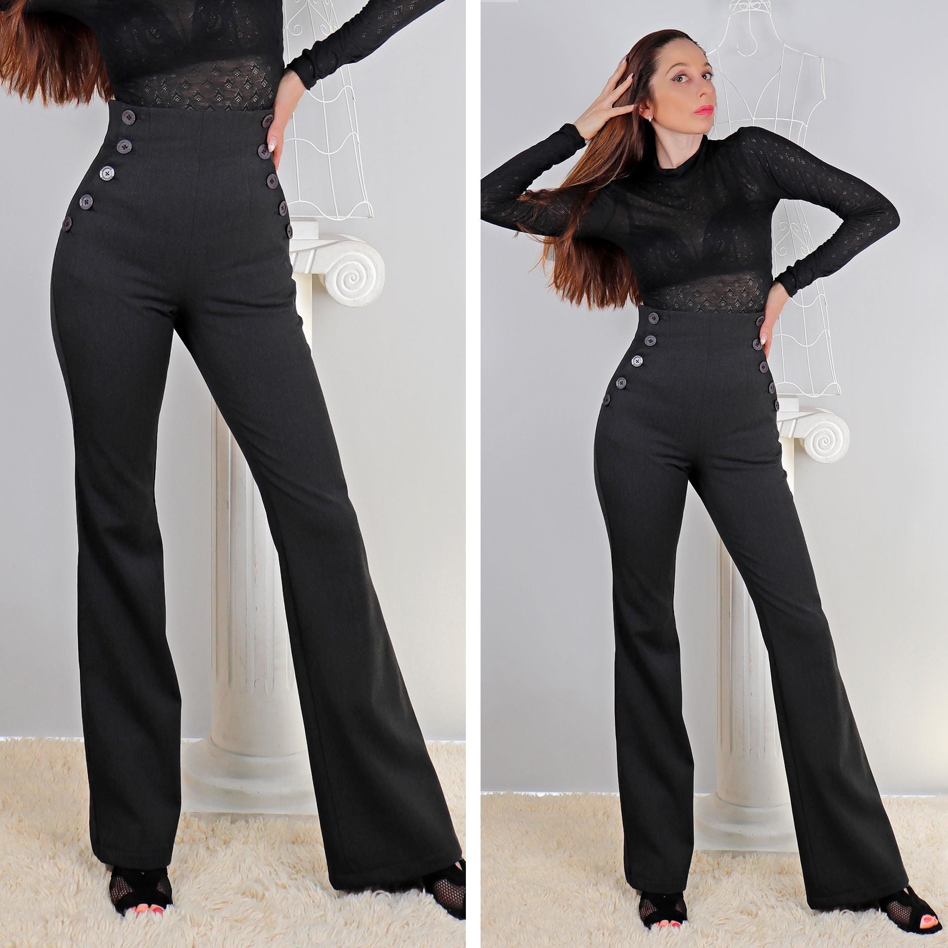 "High waist wintry bistretch trousers, Double breasted corset, Double sides buttons, Boot-cut l...