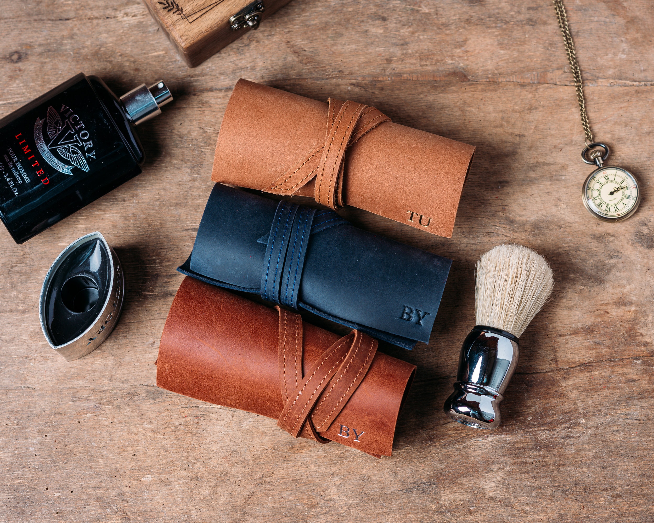 Personalized Shaving Brush Rolls, Customized Leather Shaving Brush ...