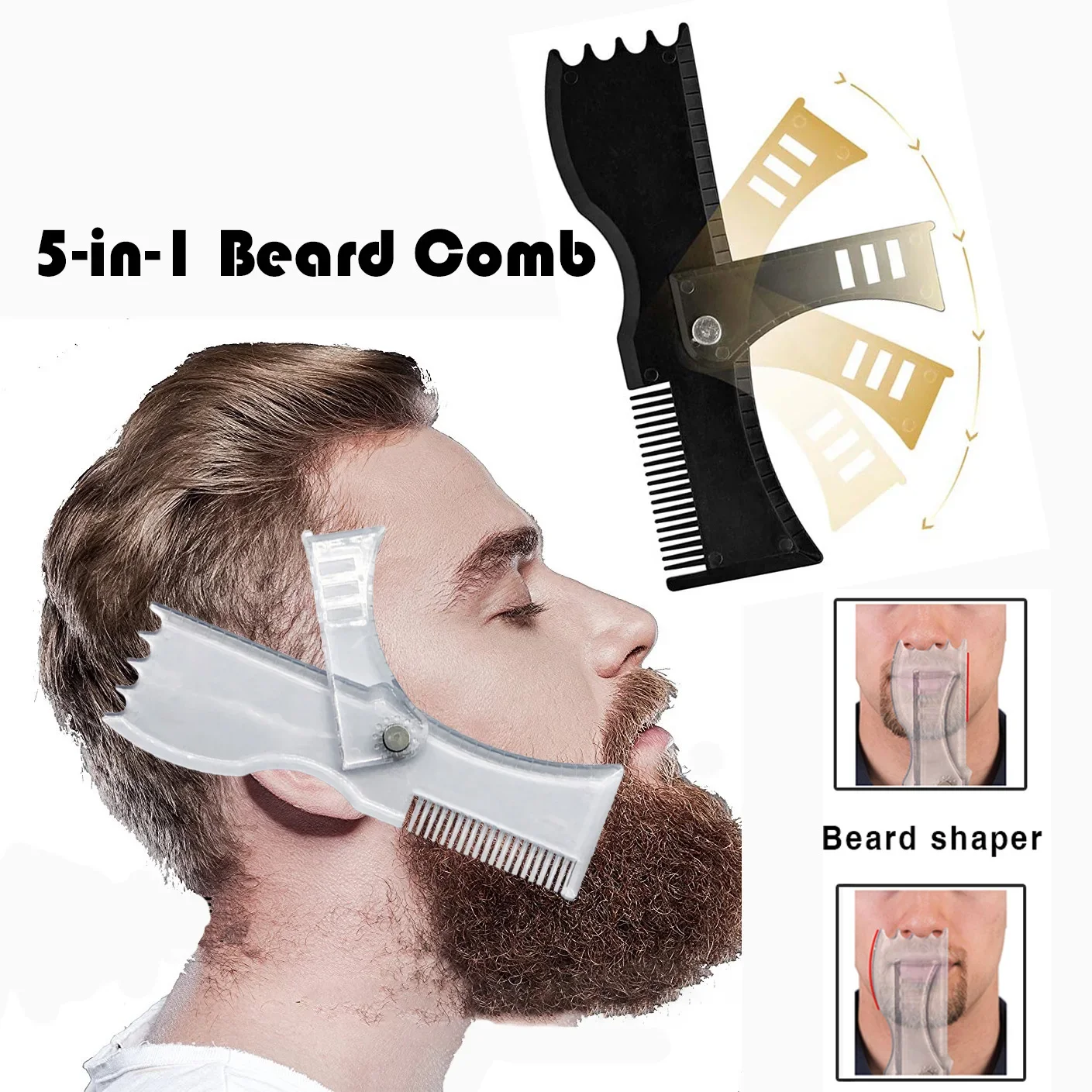 5-in-1 Adjustable Beard Comb Styling Tool Rotatable Comb Hair Trimming Mold Shaper Template for Men ...