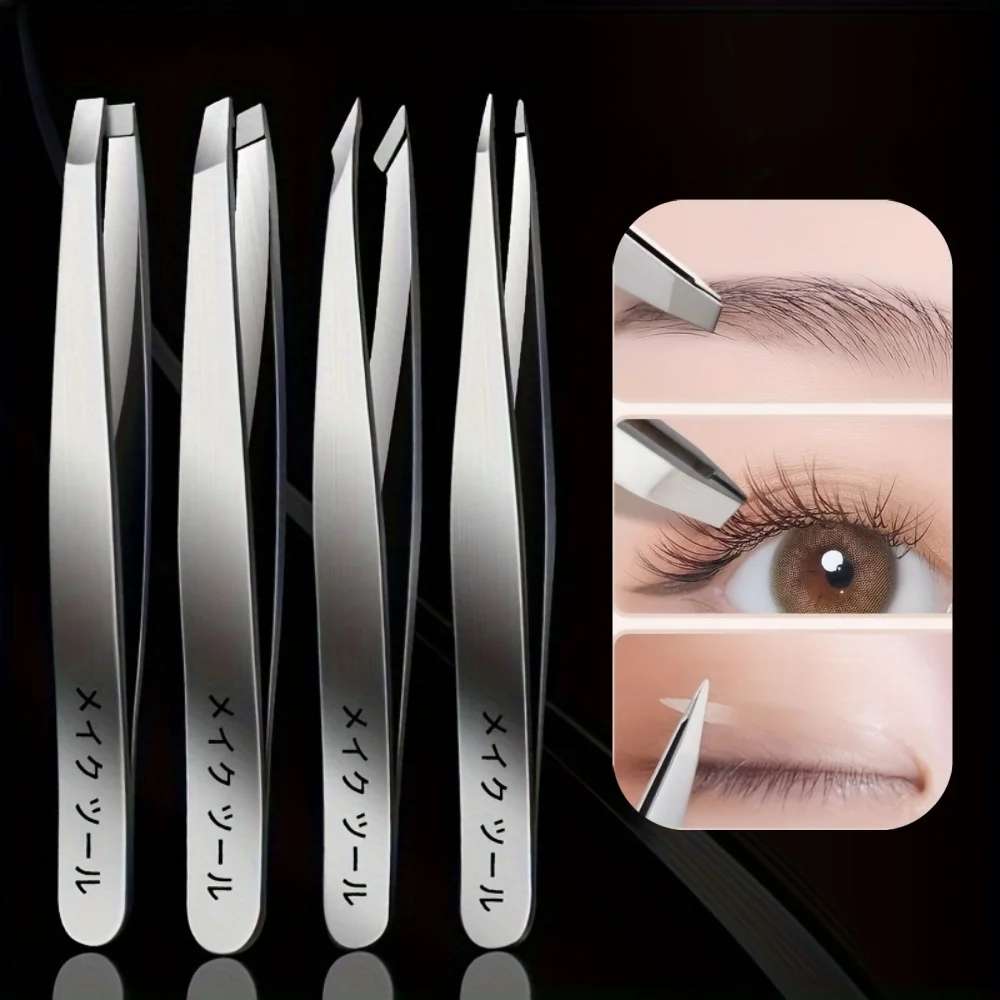 Professional stainless steel tweezers for eyebrows and ingrown hair removal—precision facial h...