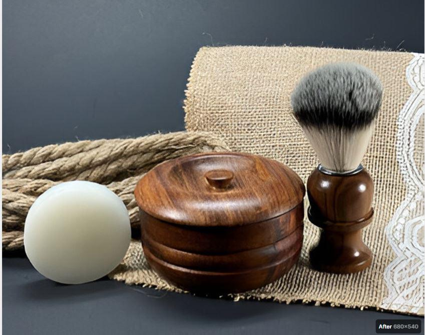 Handmade Wood Shaving Set: Bowl with Lid, Brush & Fragrance-Fre...