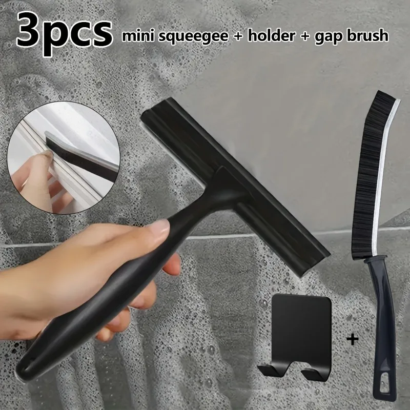 3pcs Small Squeegee with Holder & Gap Brush, Handheld Scraper for Shower Glass,Window,Mirror,Car...