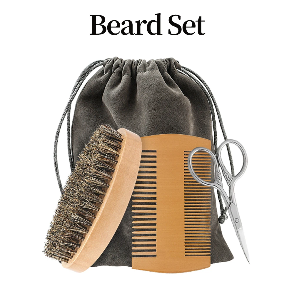 Men's Beard Care Tool Set Hair Scissor Mustache Shaving Brush Natur...
