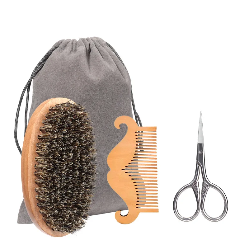 Professional Soft Boar Bristle Beard Brush Scissors Shaving Brush Comb Men Mustache Comb Kit With Gi...