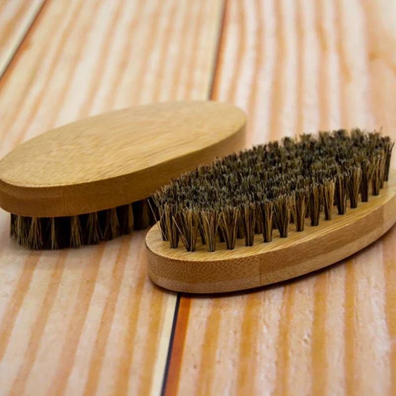 Natural Wild Boar Mane Beard Bamboo Brush Men's Shaving Brush Portable Beard Brush Facial Cleaning&#...