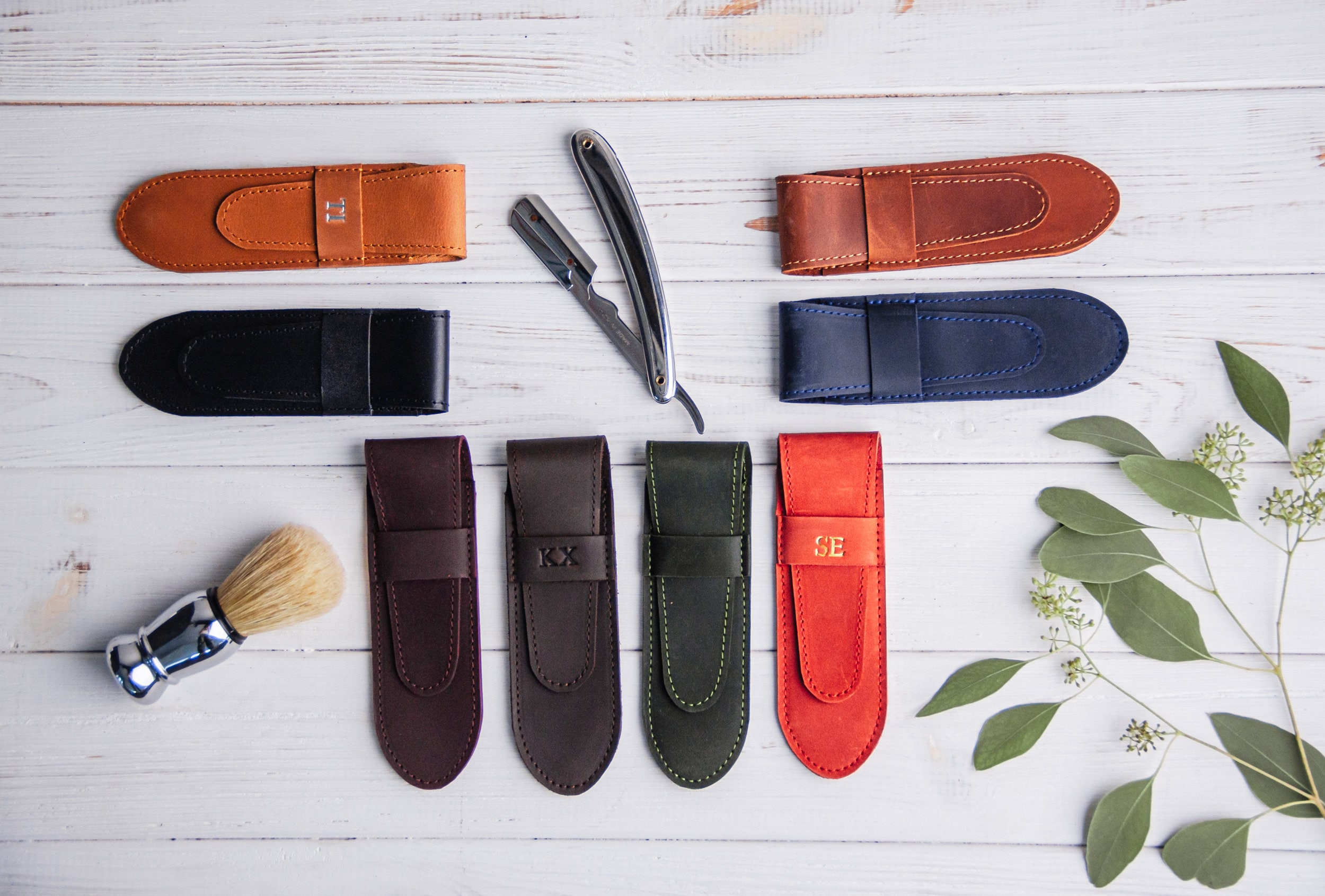 Leather straight razor case, Travel straight razor case, Custom str...