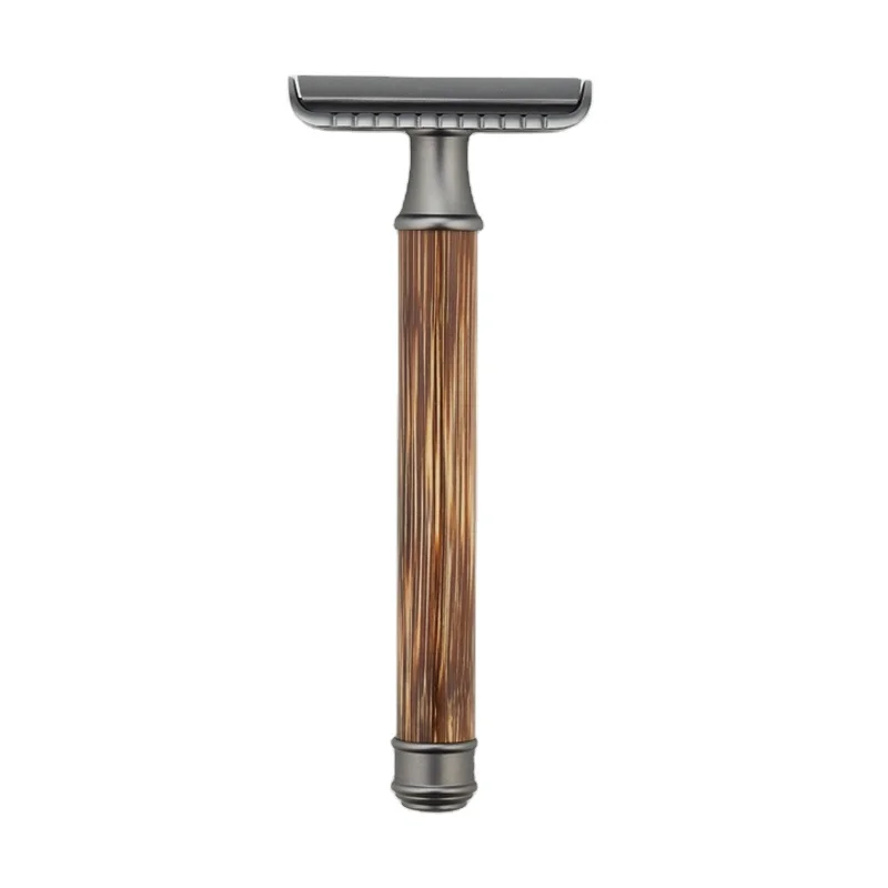 Double Edge Safety Razor Long Natural Bamboo Handle Eco-Friendly Wo...