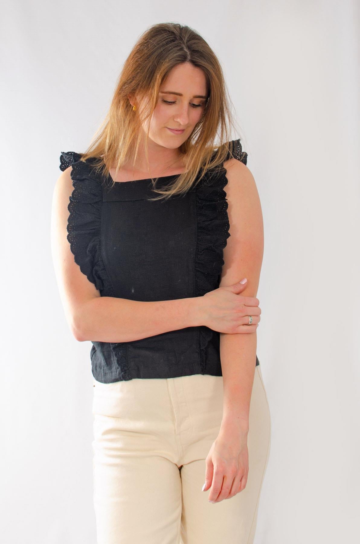 Secret Label Womens Broderie Button Detail Blouse - Black Linen - S...