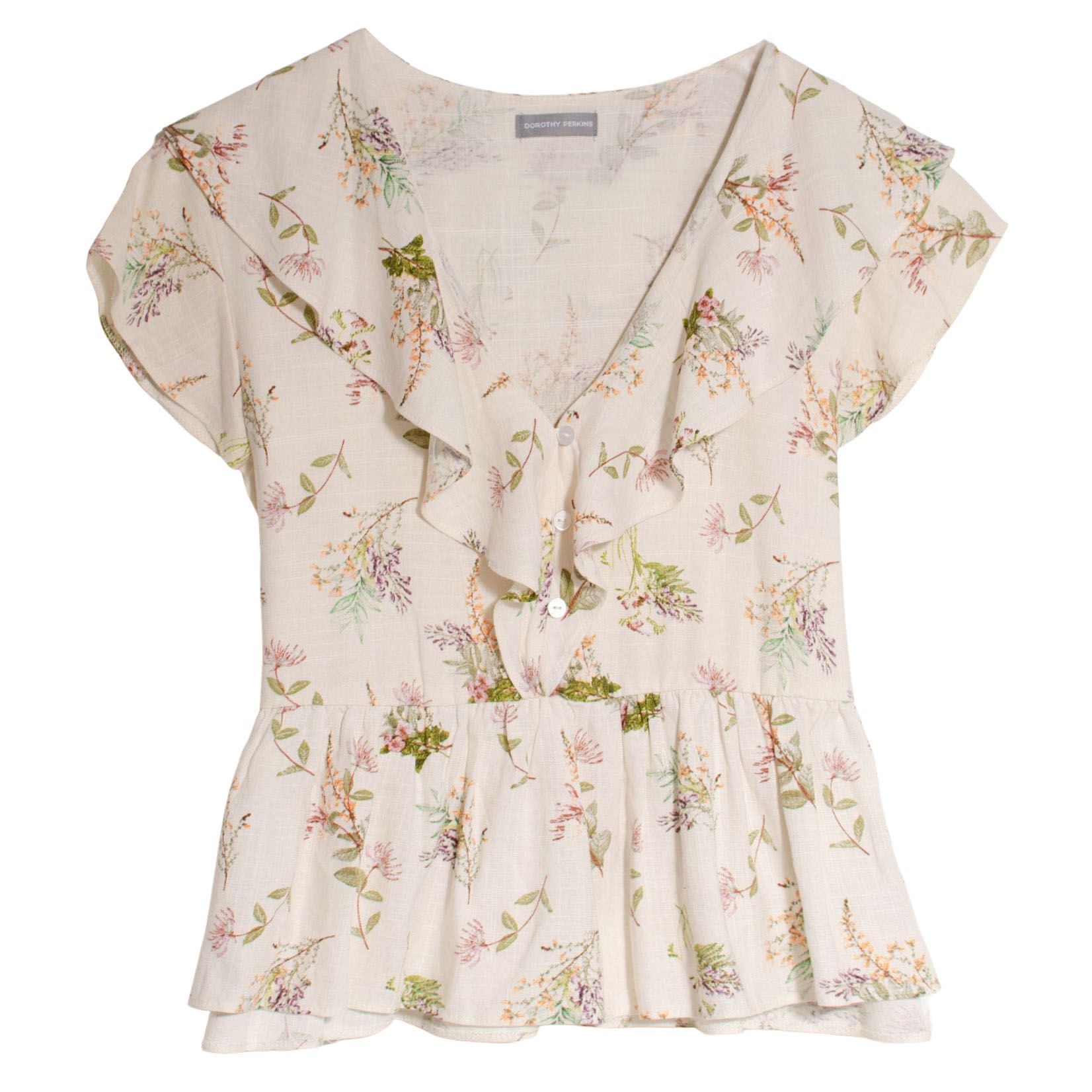 Dorothy Perkins Womens Floral Peplum Blouse - Ivory Linen - Size 10...