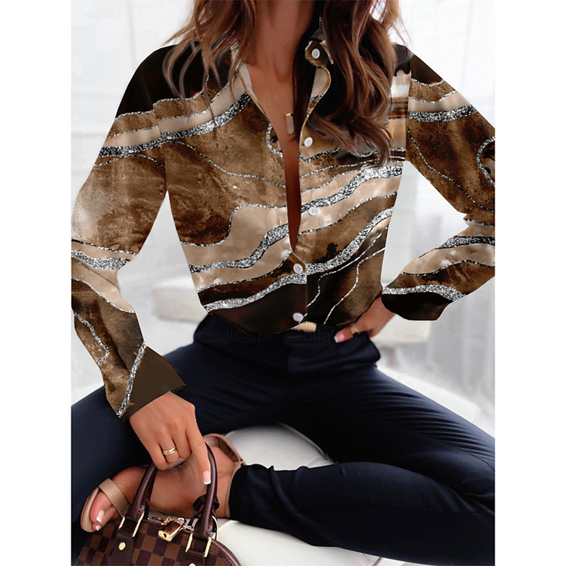 Women's Shirt Button Down Tunic Shirt Collar Long Sleeve Fashion Ab...