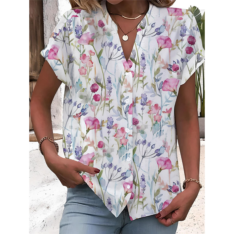 Women's Shirt V Neck Button Down Blouse Fashion Streetwear Floral B...