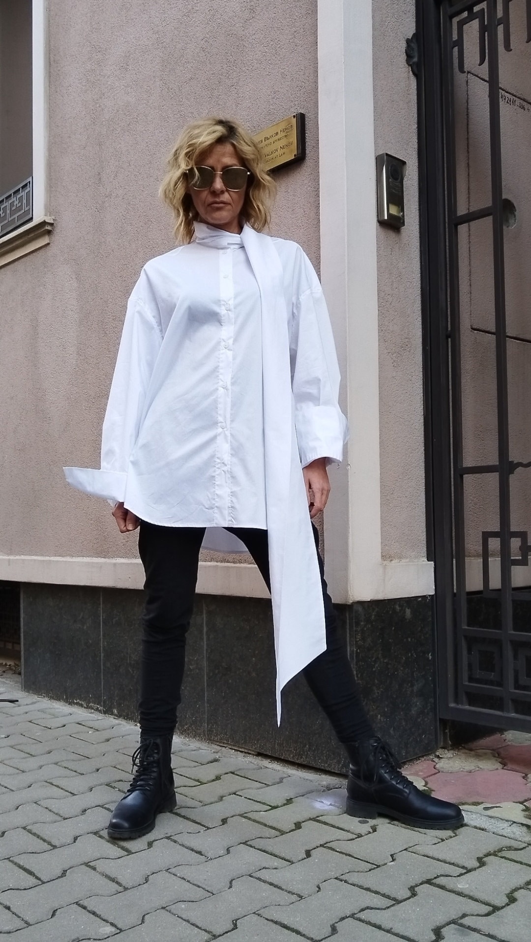 "Long collar shirt with a white long shirt with long sleeves. The Shirt fits perfectly on pants...