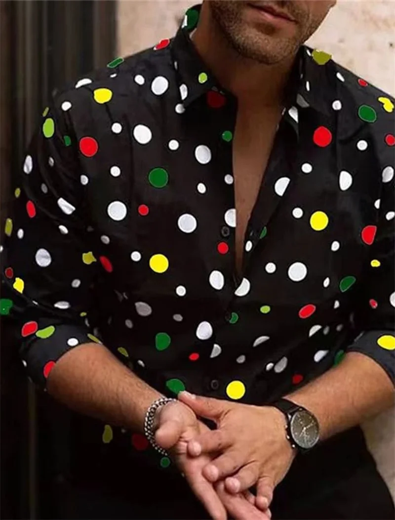Men's Dot Long Sleeve Shirt Casual Shirt Green And White Yellow Long Sleeve Shirt Novelty Funny Shir...
