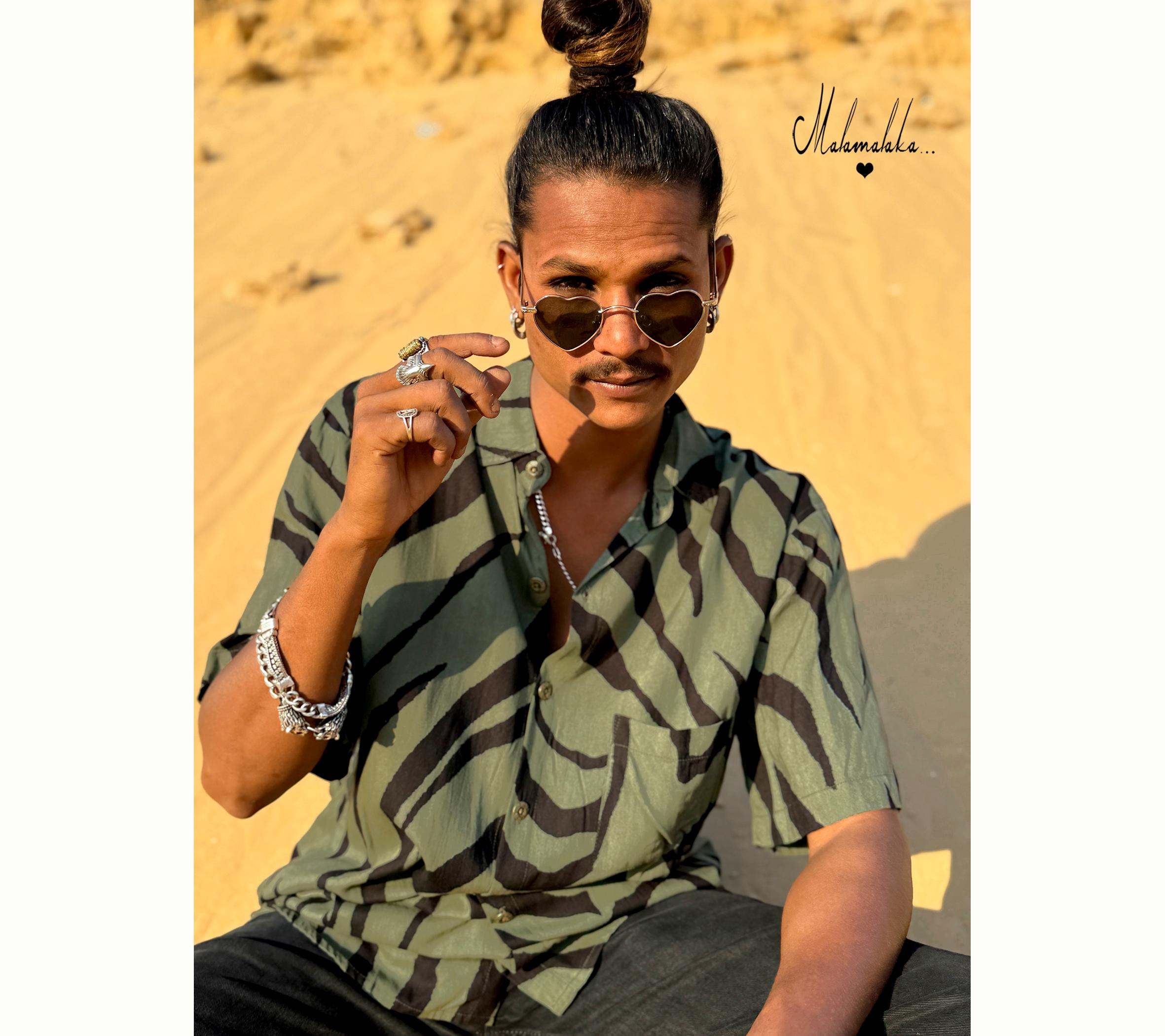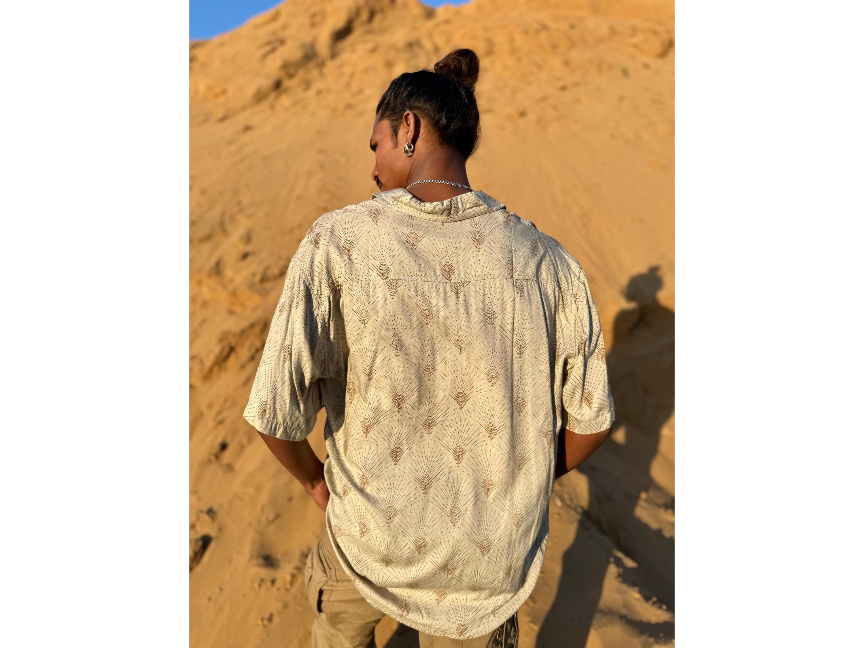Max shirt, short sleeves - brown and green wedding flower wax print. - Unisex fit, button closure - ...