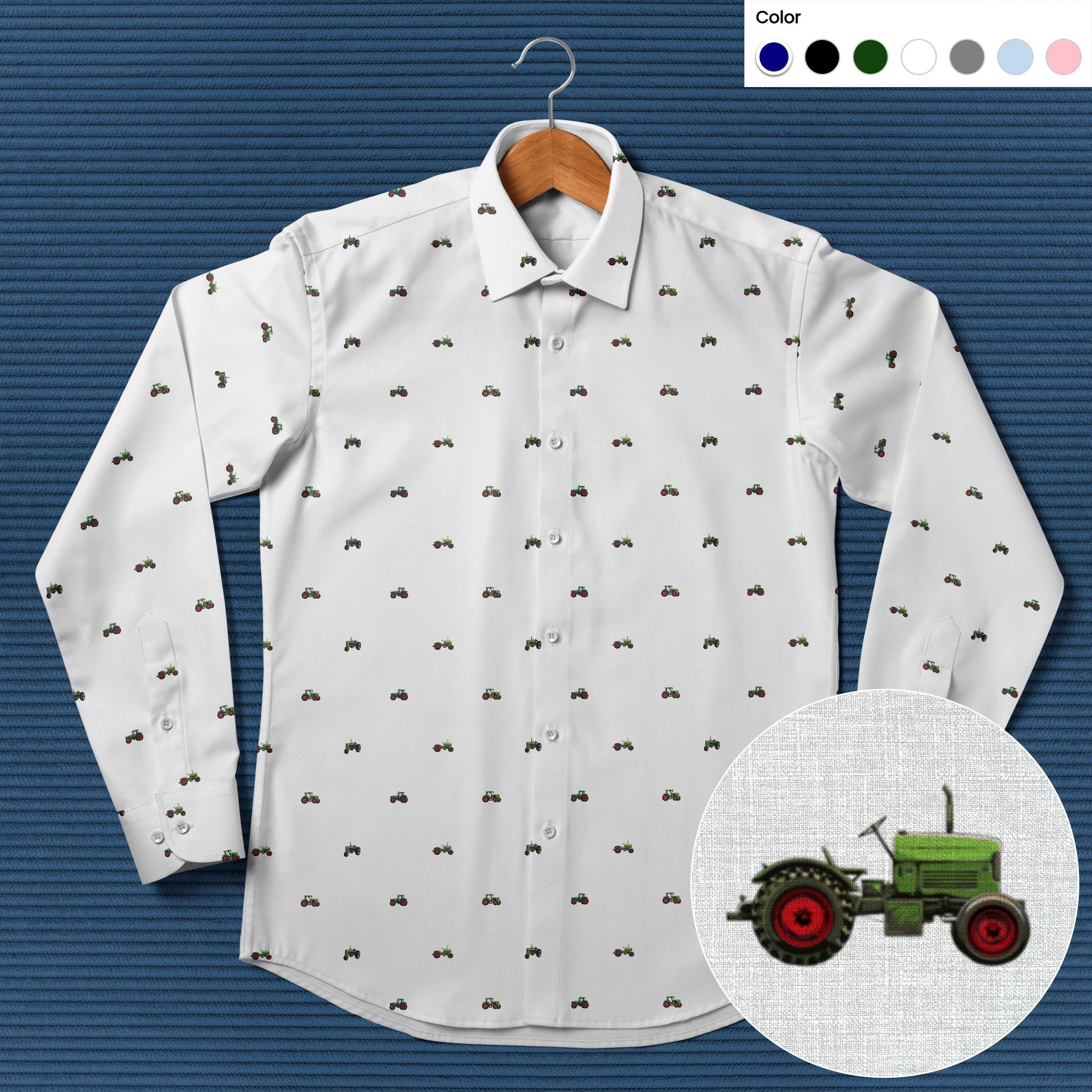 Green Tractor pattern pattern - Men's Casual Long Sleeve Shirt