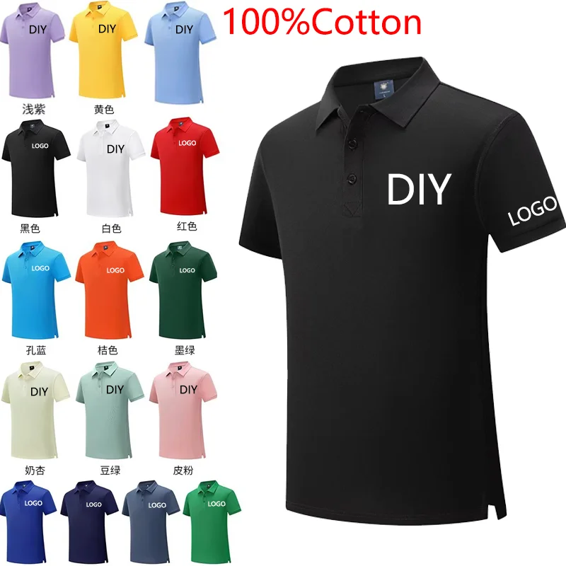 Summer 100% cotton overalls polo shirt custom company logo embroidered lapel short-sleeve T-shirt pr...