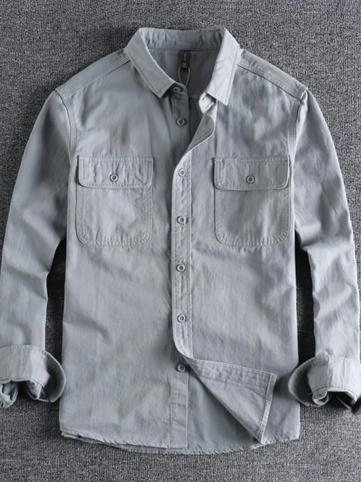 Heavyweight Washed Cotton Workwear Denim Shirt for Men Motorcycle Style Loose Fit Button Down Cargo ...