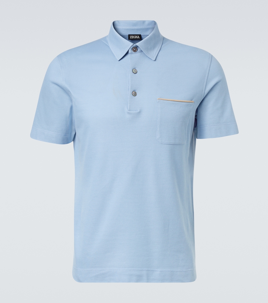 Zegna Men, Cotton piqué polo shirt, Blue, UK 36, Polo shirts