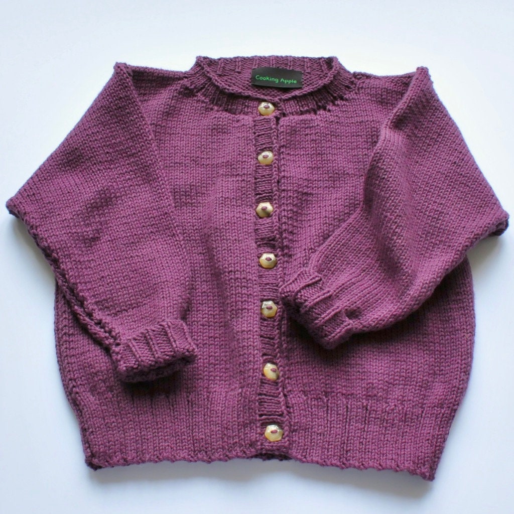 Aubergine cotton, hand-knitted, cardigan, cooking apple, knitwear