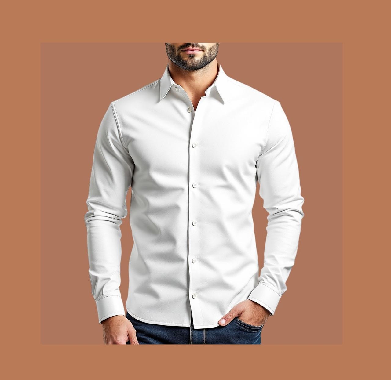 "Elevate your style with this timeless Men's White Leather Shirt, designed for both sophisticat...