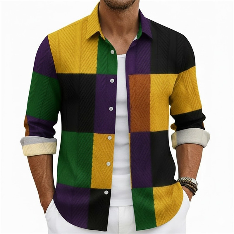 Carnival Men's Plaid Shirt Dress Shirt Button Up Shirt Long Sleeve ...