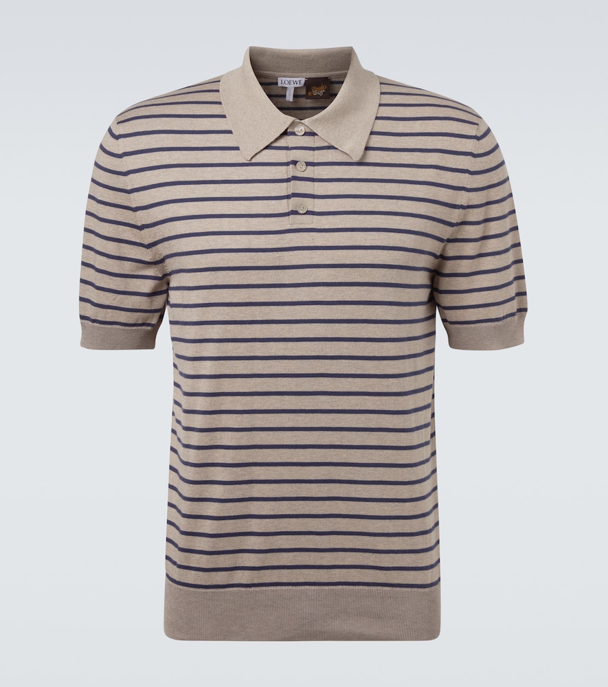 Loewe Men, Knitted striped cotton-blend polo shirt, Brown, UK 38, P...