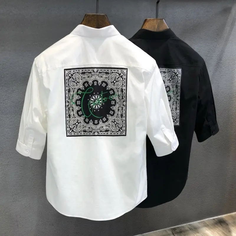 New Lace Trendy Men's Slim Shirt Korean Version of Spring Multi-col...