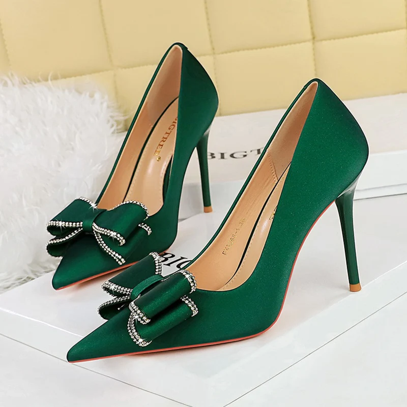 BIGTREE New Fashion Women Dress Shoes 10cm High Heels Shallow Pointed Toe Crystal Butterfly Knots La...
