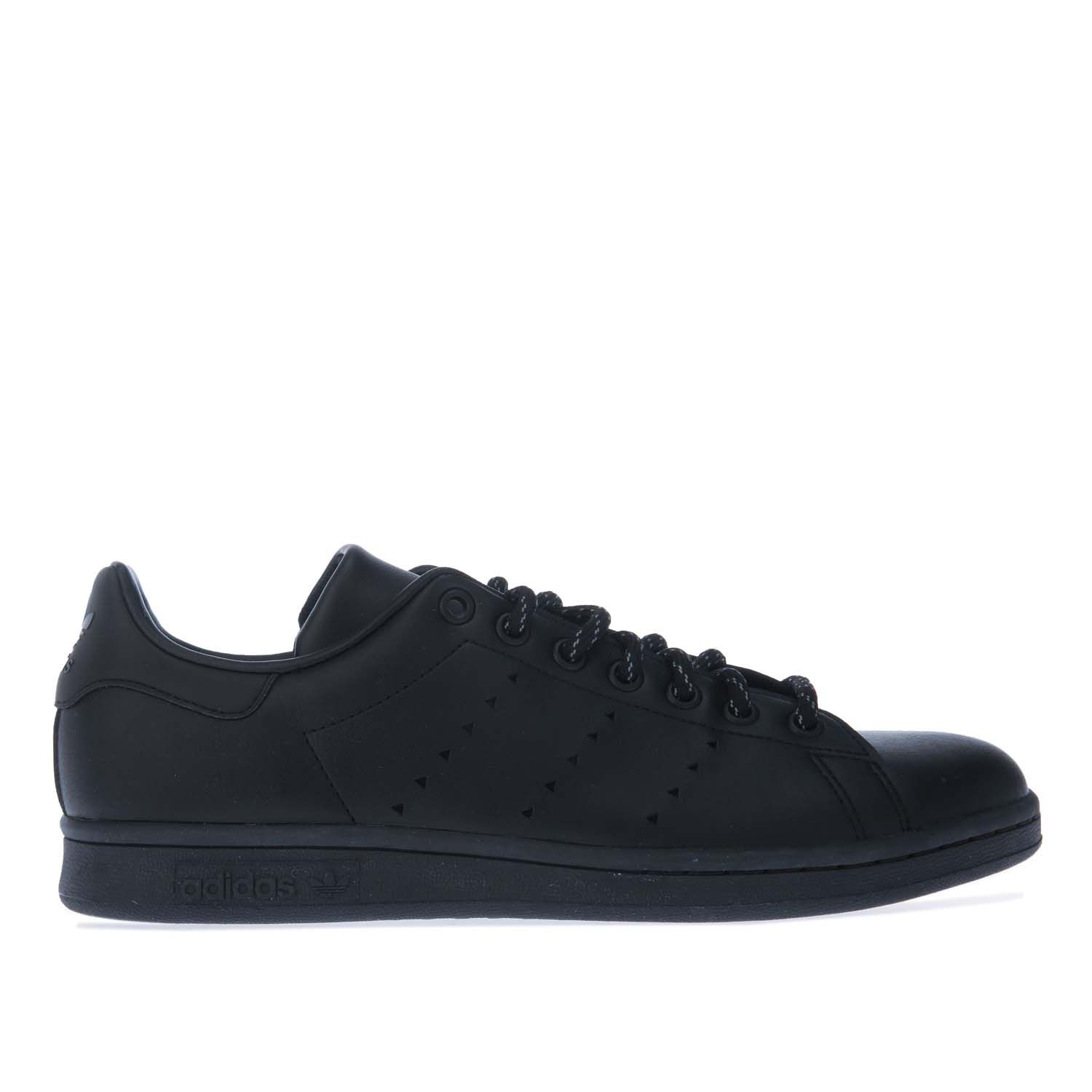 Mens adidas Originals Stan Smith Trainers in black.- Synthetic upper.- Lace fastening. - Perforated ...