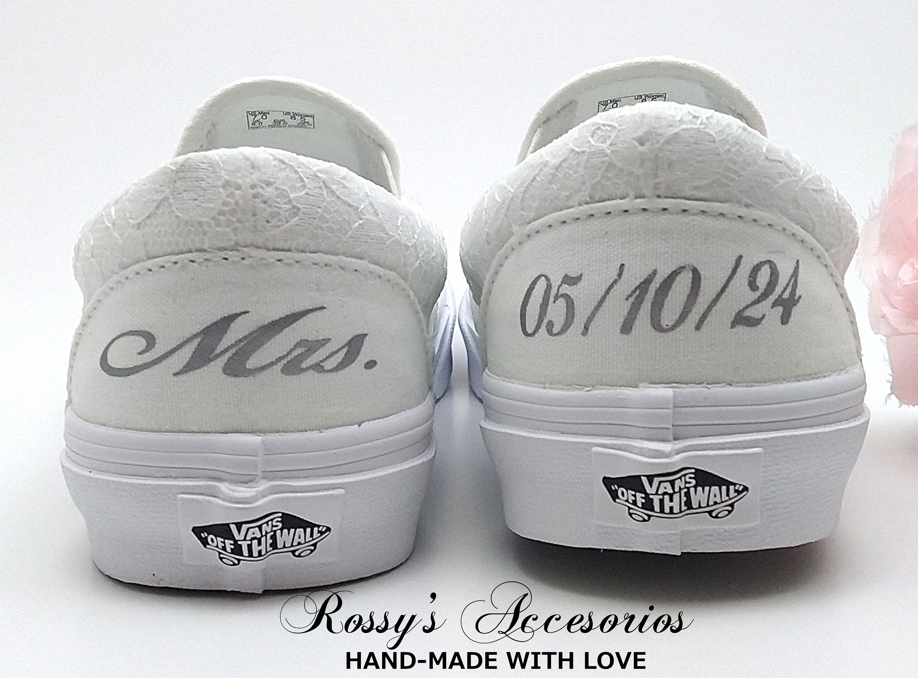 Slip On White Lace Wedding Vans / Lace Vans Slip On Sneakers / Wedd...