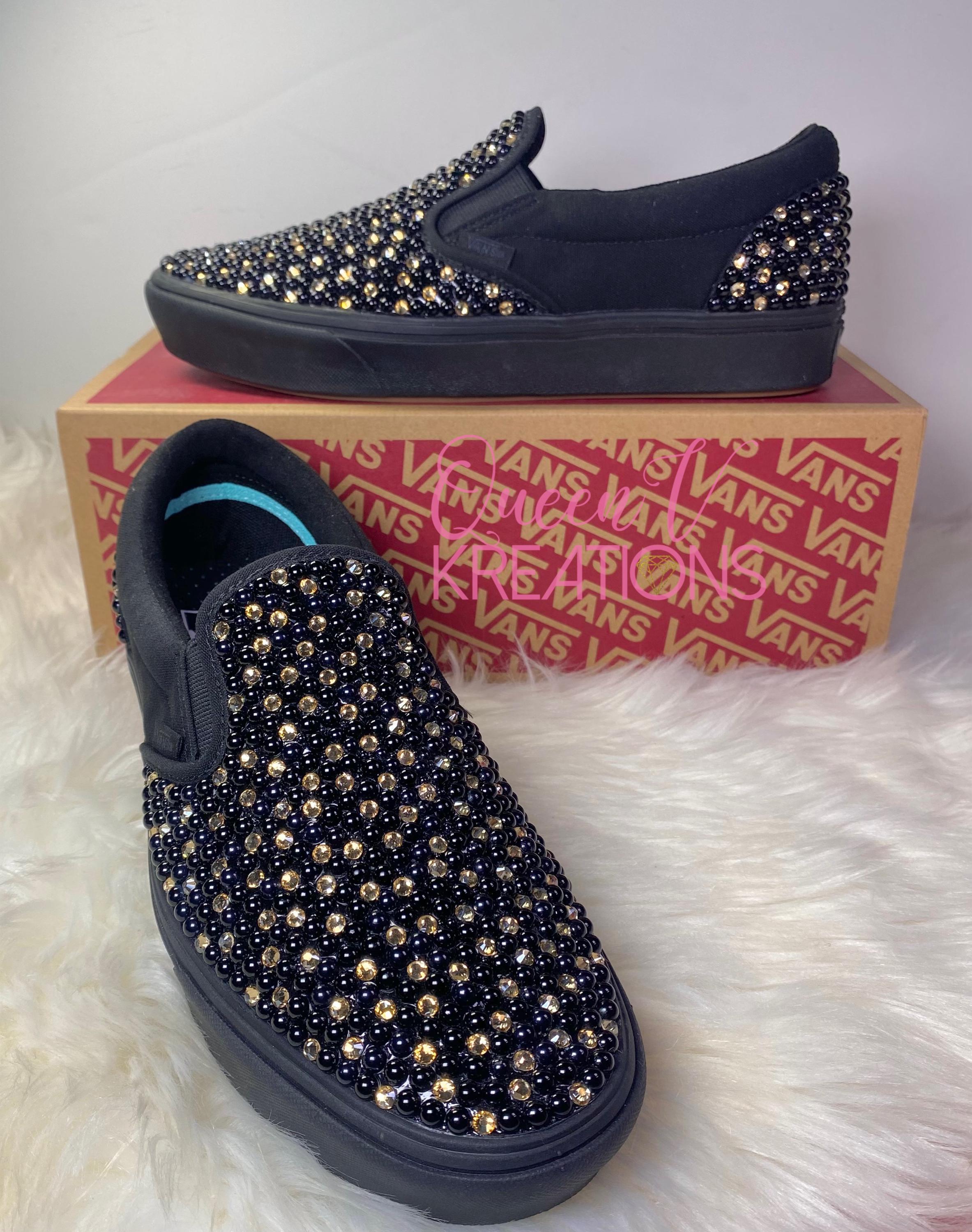 Black And Champagne Bling Slip On Vans*Custom Bling Vans*Wedding Va...