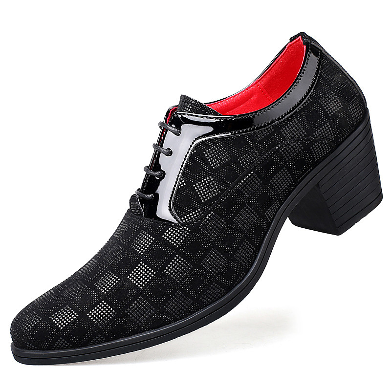 Men's Patterned Lace-Up Block Heel Dress Shoes – Blue and Bla...