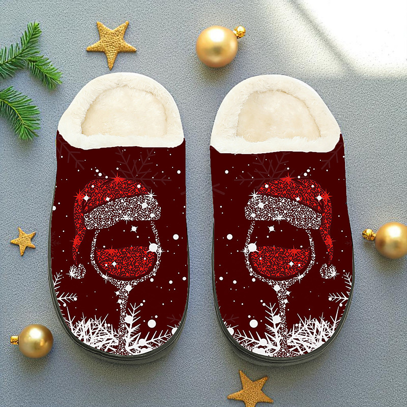 Women's Christmas Wine Glass Slippers - Red Wine Glass with Santa H...