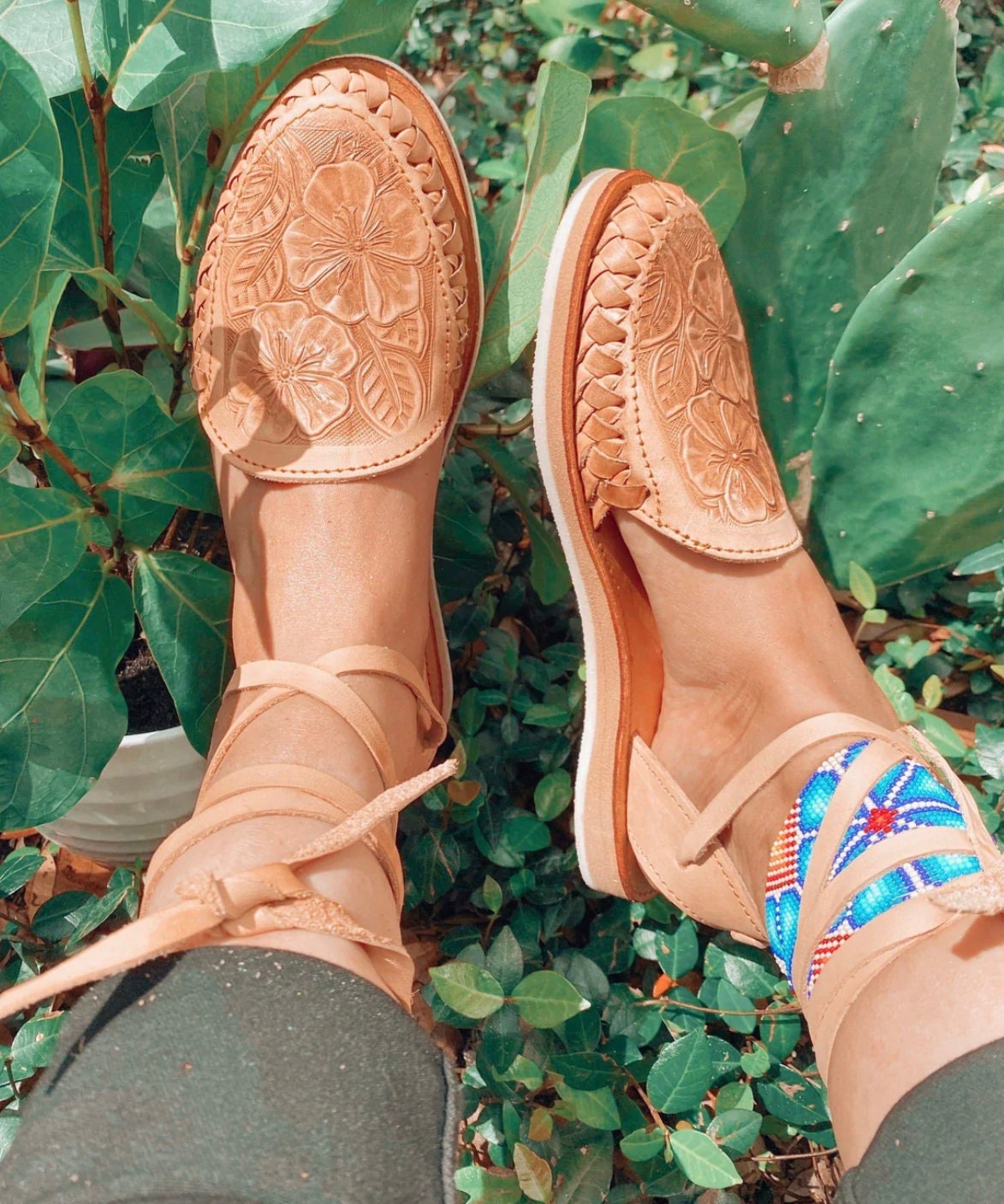 Women Huaraches, Beige Mexican Huaraches, Huaraches para mujer, flo...
