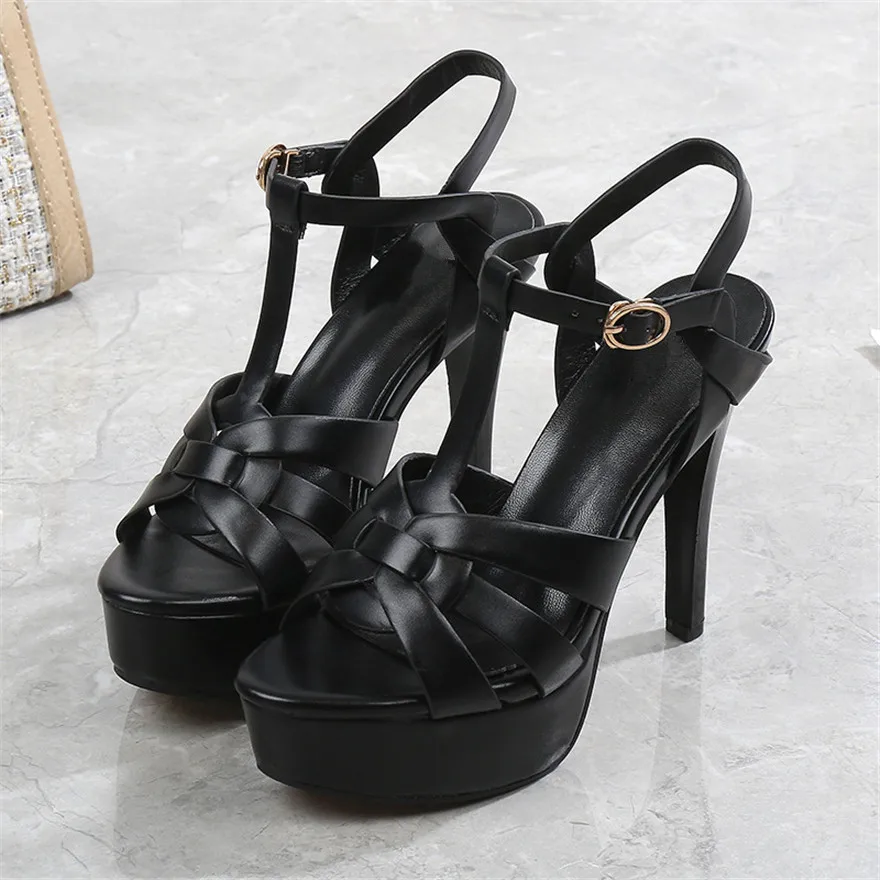 2025 Summer Sexy Soft Leather Platform Sandals Women High Heels T-Buckle Party Pumps Black Stiletto ...