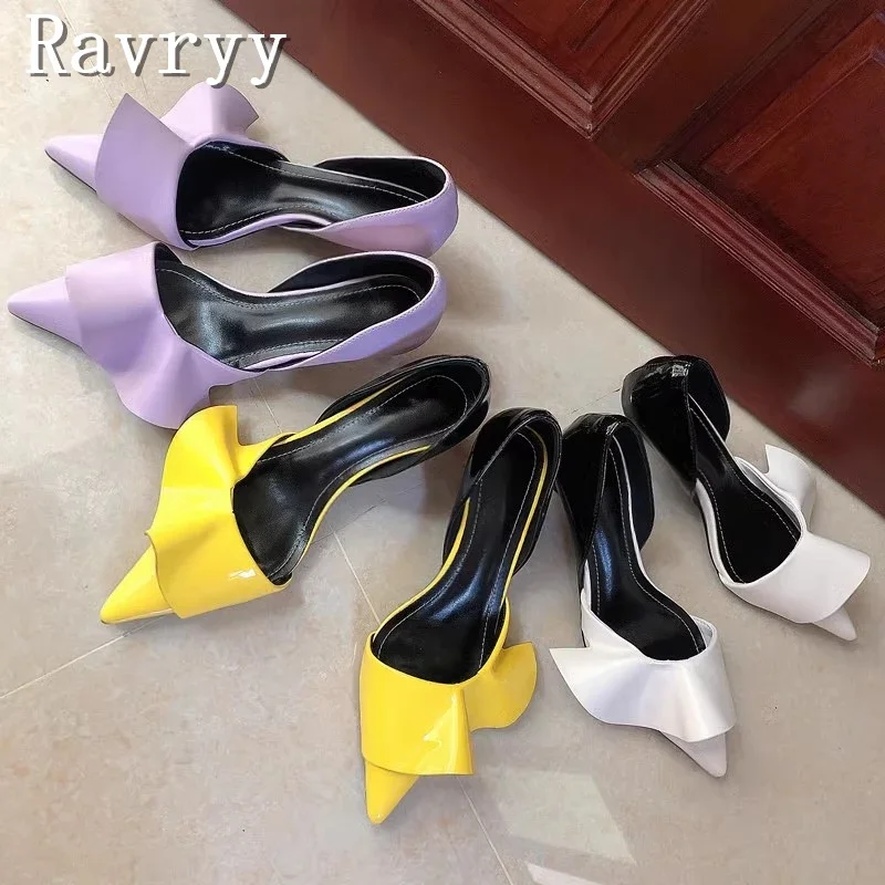 Lotus Leaf Petal Patent Leather Women's Pumps Pointed Toe Shallow Kitten Heel Sandals Elegant Ladies...