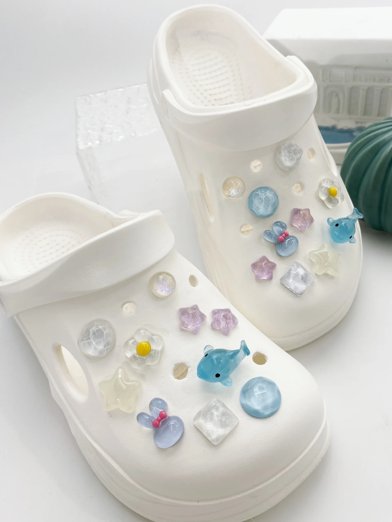 20 pieces of blue whale, Purple star, Blue Rabbit, White star shoe buckle DIY decoration, suitable f...