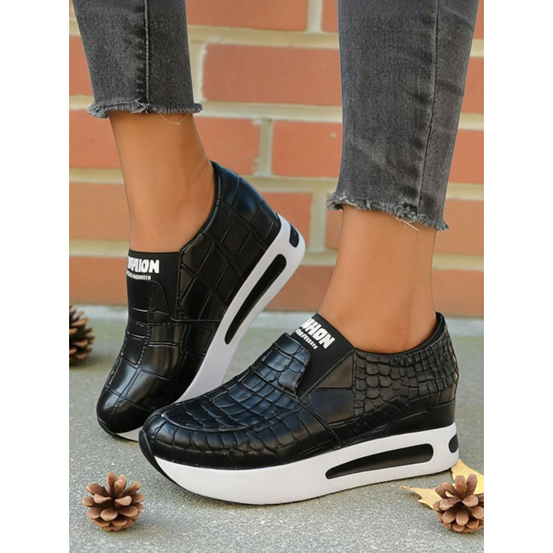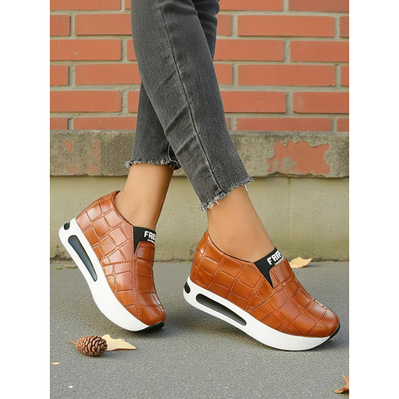 Women's Brown Crocodile Embossed Wedge Sneaker – Slip-On Plat...