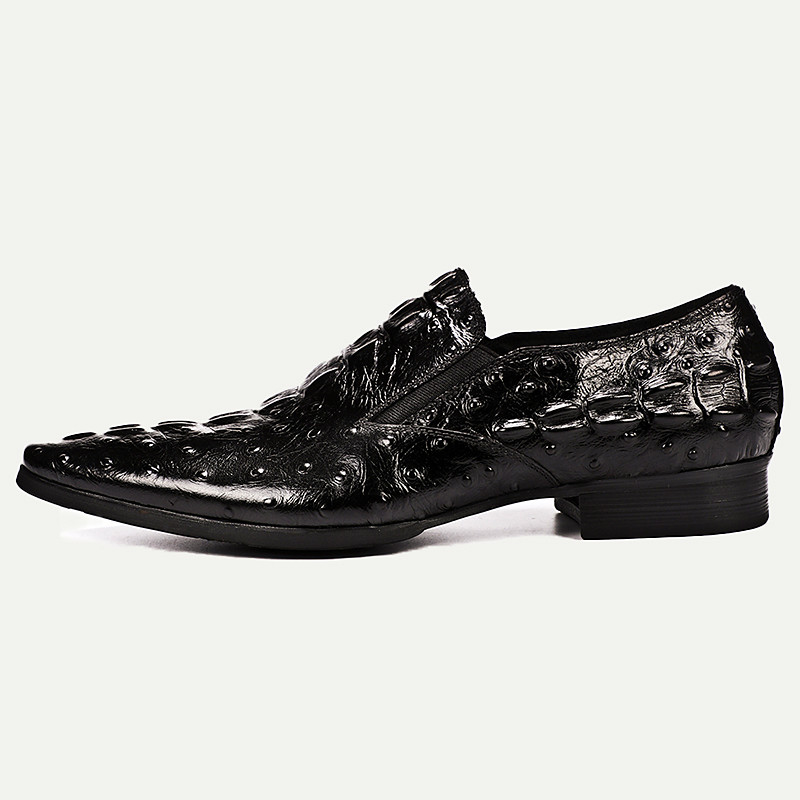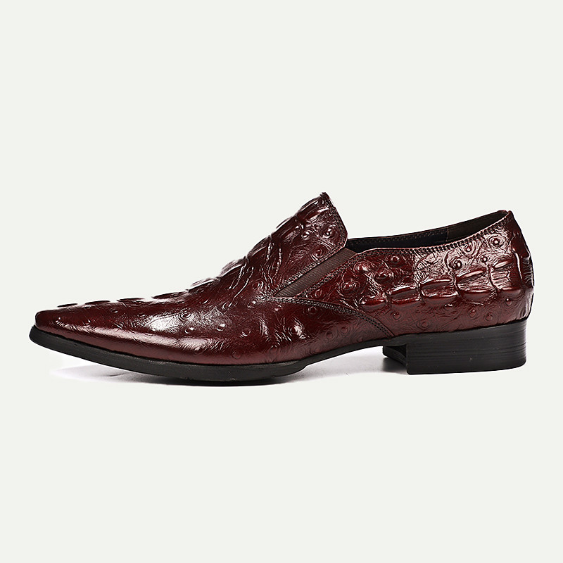 Men's Embossed Ostrich Leather Slip-On Loafers – Premium Brow...