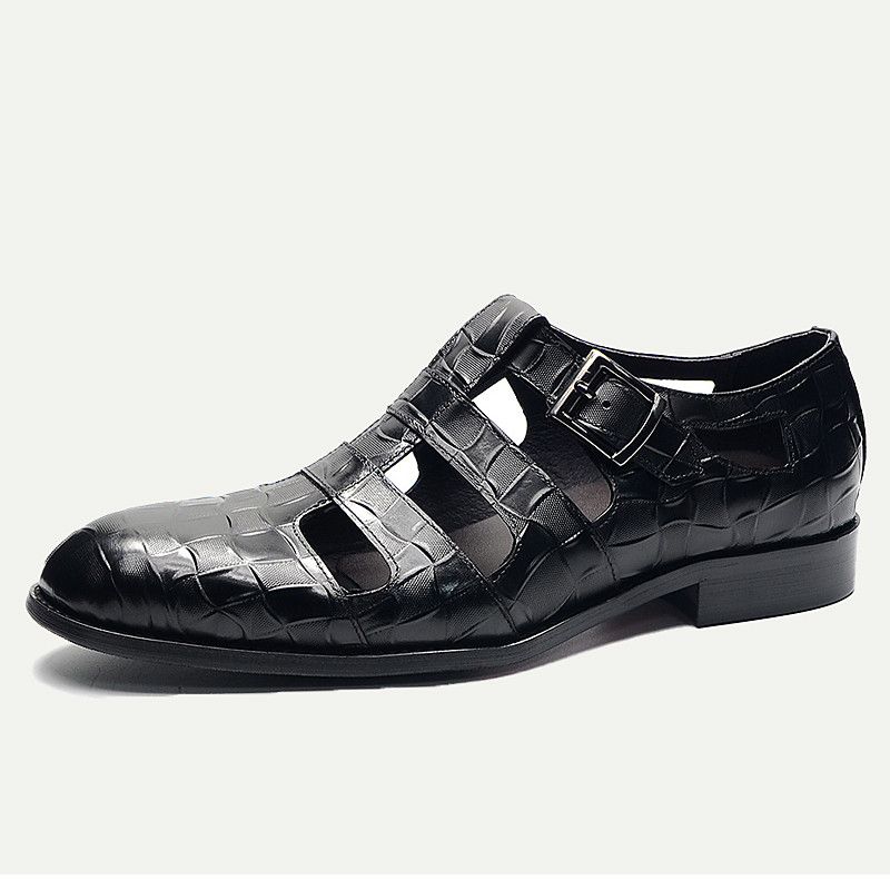 Men's Fishermen Sandals in Premium Crocodile Pattern Leather with M...