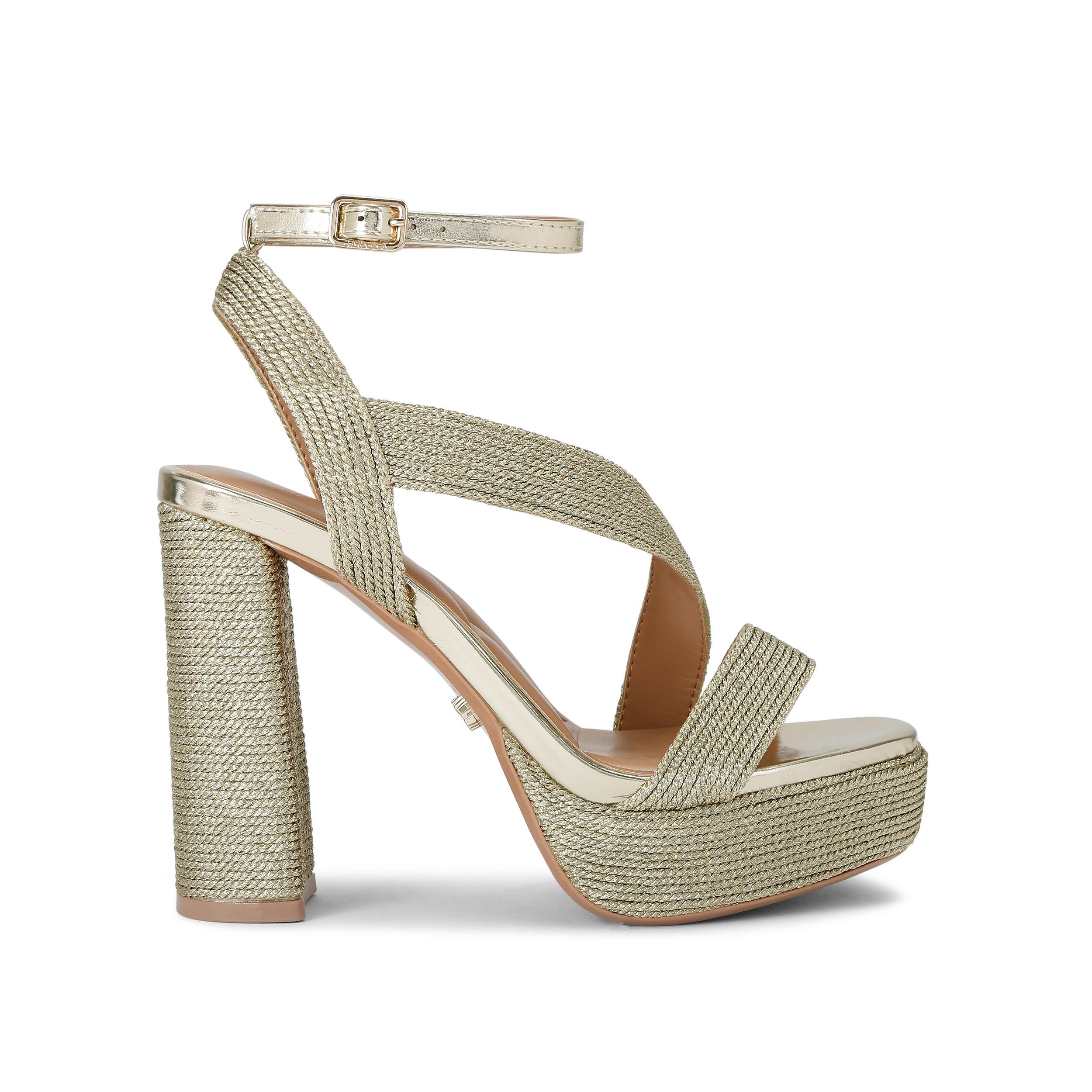 This Kurt Geiger pair of Gala Platform heels are crafted in gold with straps across the foot. There ...