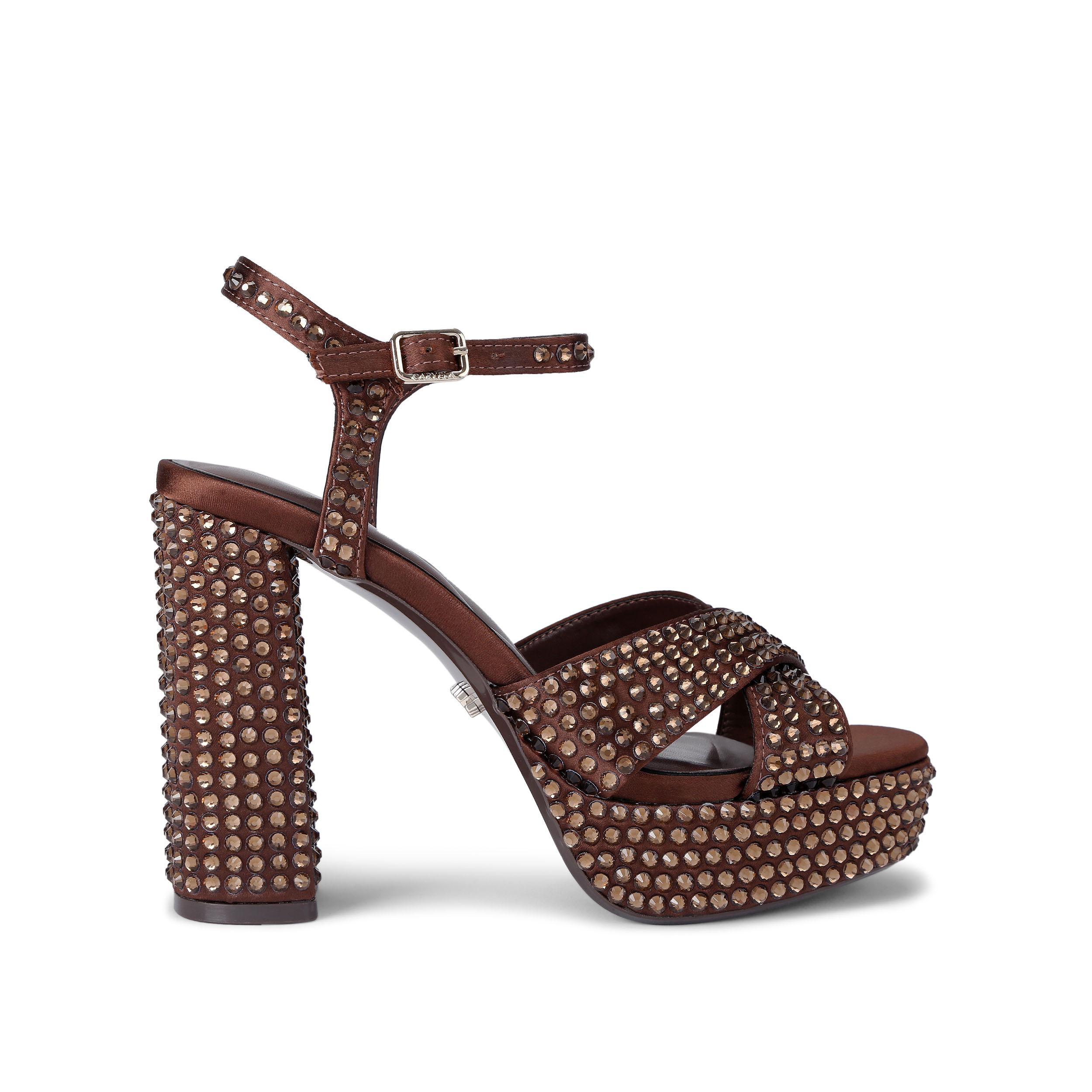 This Cinzia Platform heel is crafted from a brown satin fabric which is completely embellished with ...