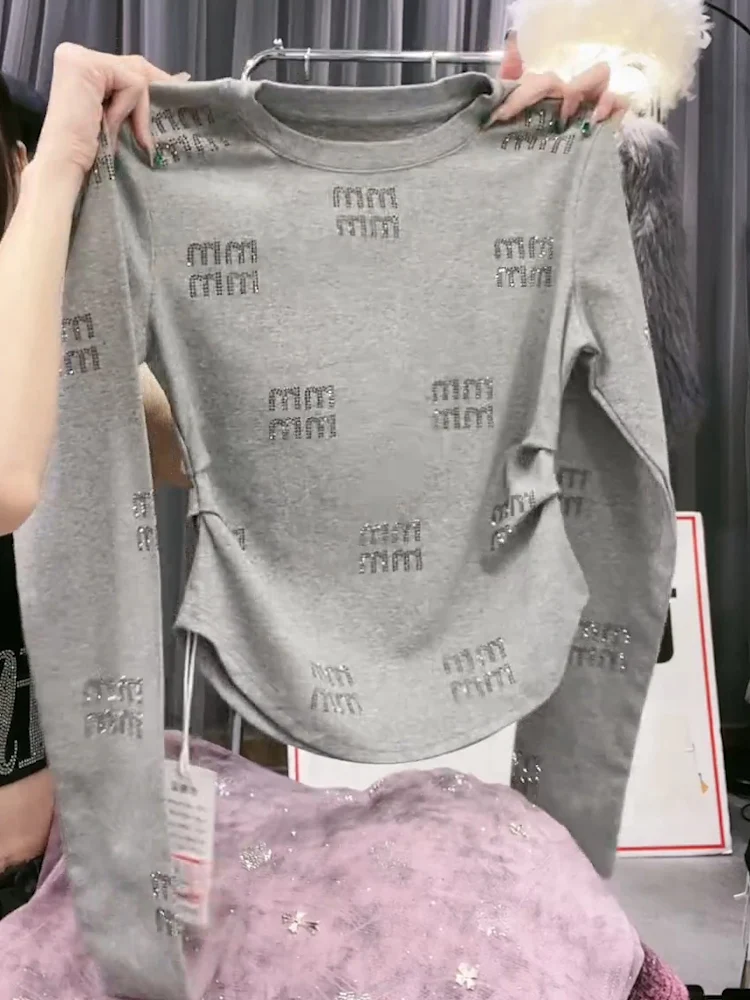 Fashionable Coffee-Colored Long-Sleeve round Neck T-Shirt Women's Base Layer Slimming Top Trendy Com...