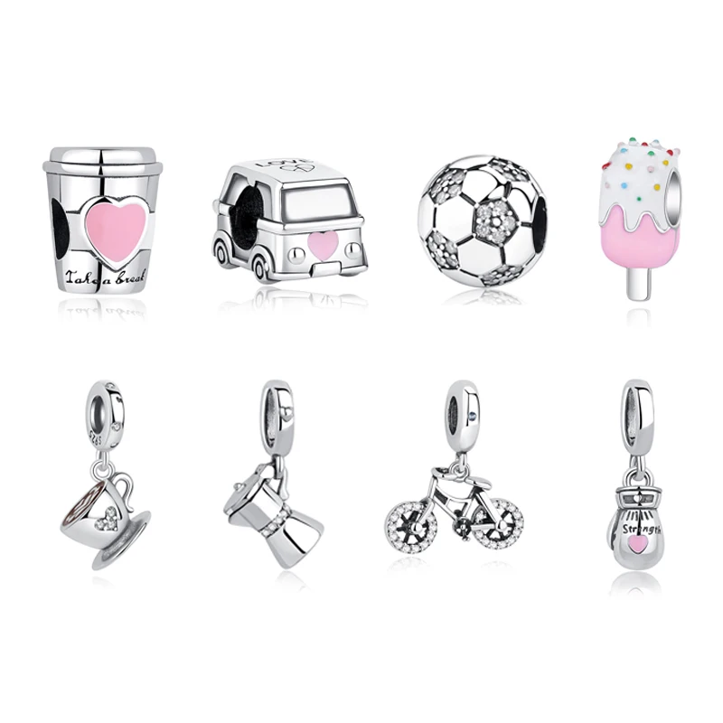 Original 925 Sterling Silver Charms Soccer Football Love Coffee Beads Fit Brand Bracelets Necklaces ...
