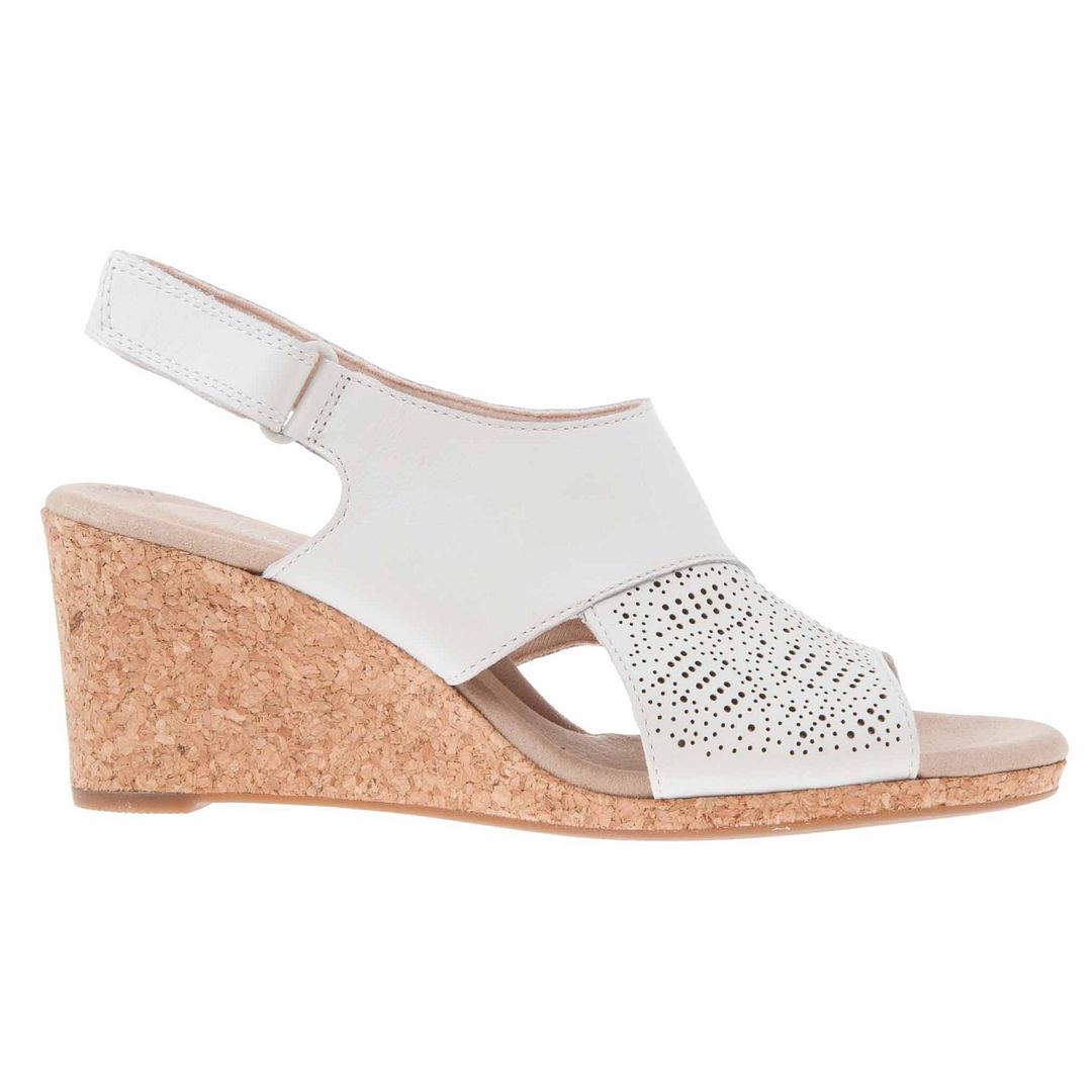 Clarks Lafley Joy Buckle White Smooth Leather Womens Wedges 261454274
