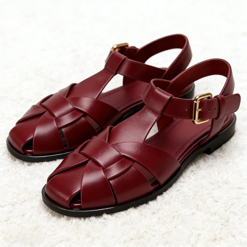 Luxury Designer Gold Woven Flat Sandals for Women Round Toe Metal Buckle Comfort Gladiator Sandals L...