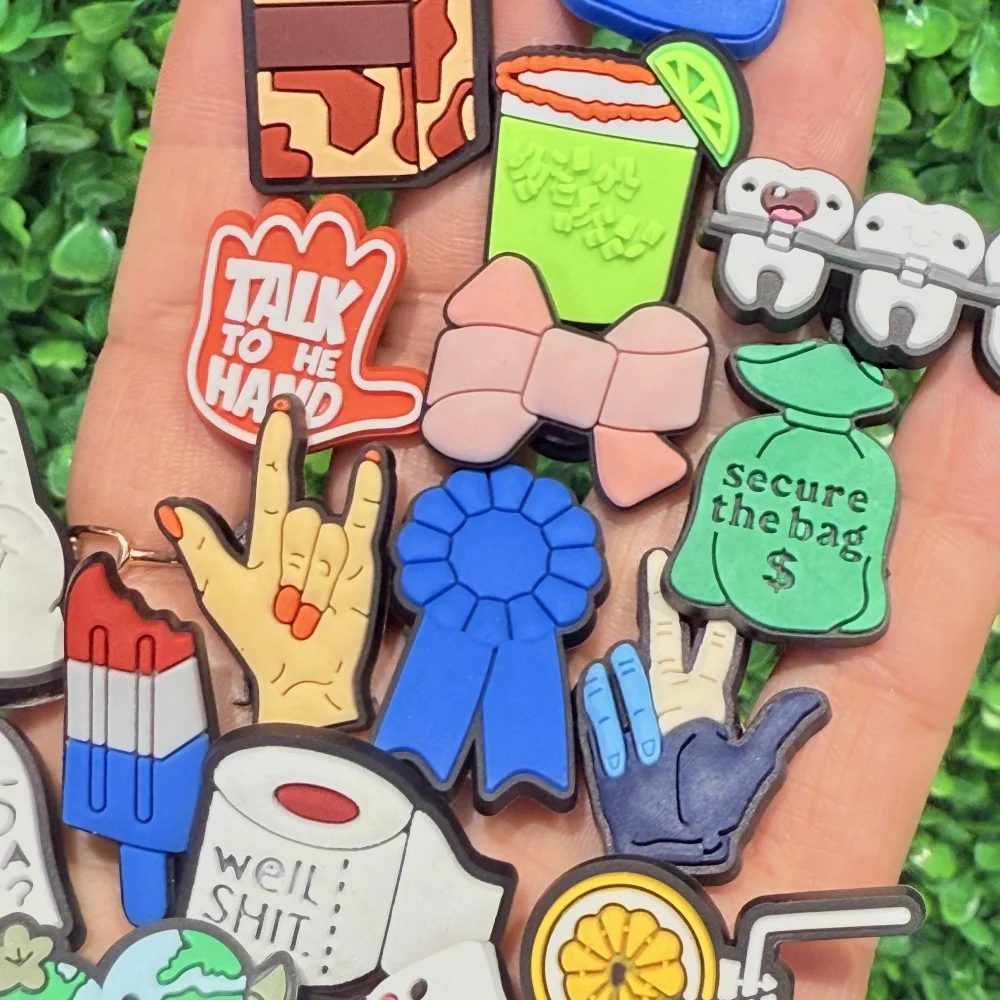 1-100pcs Love Earth Milk Camera Hand Teeth Bow PVC Sandals Shoe Cha...