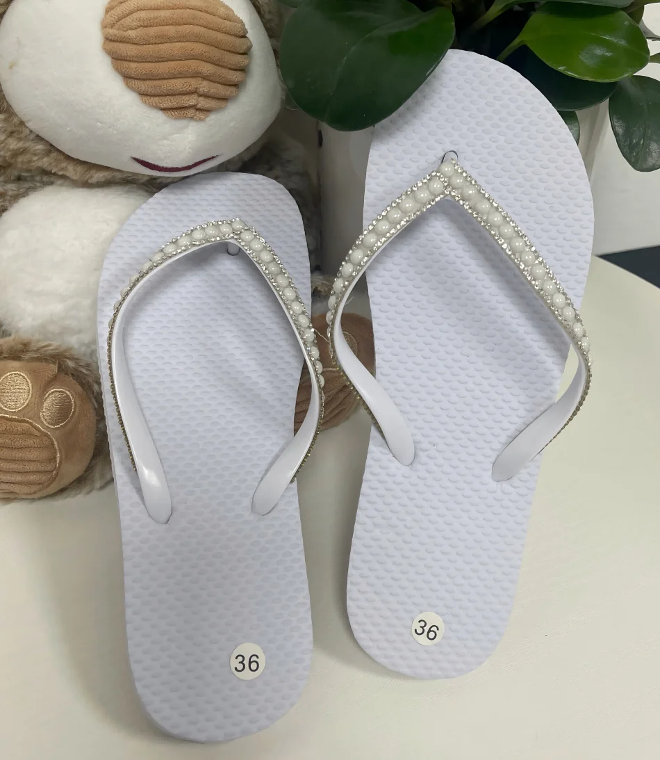 White Women Pvc Sandals Wedding Guest Flip Flops Shoes Beach Flip F...