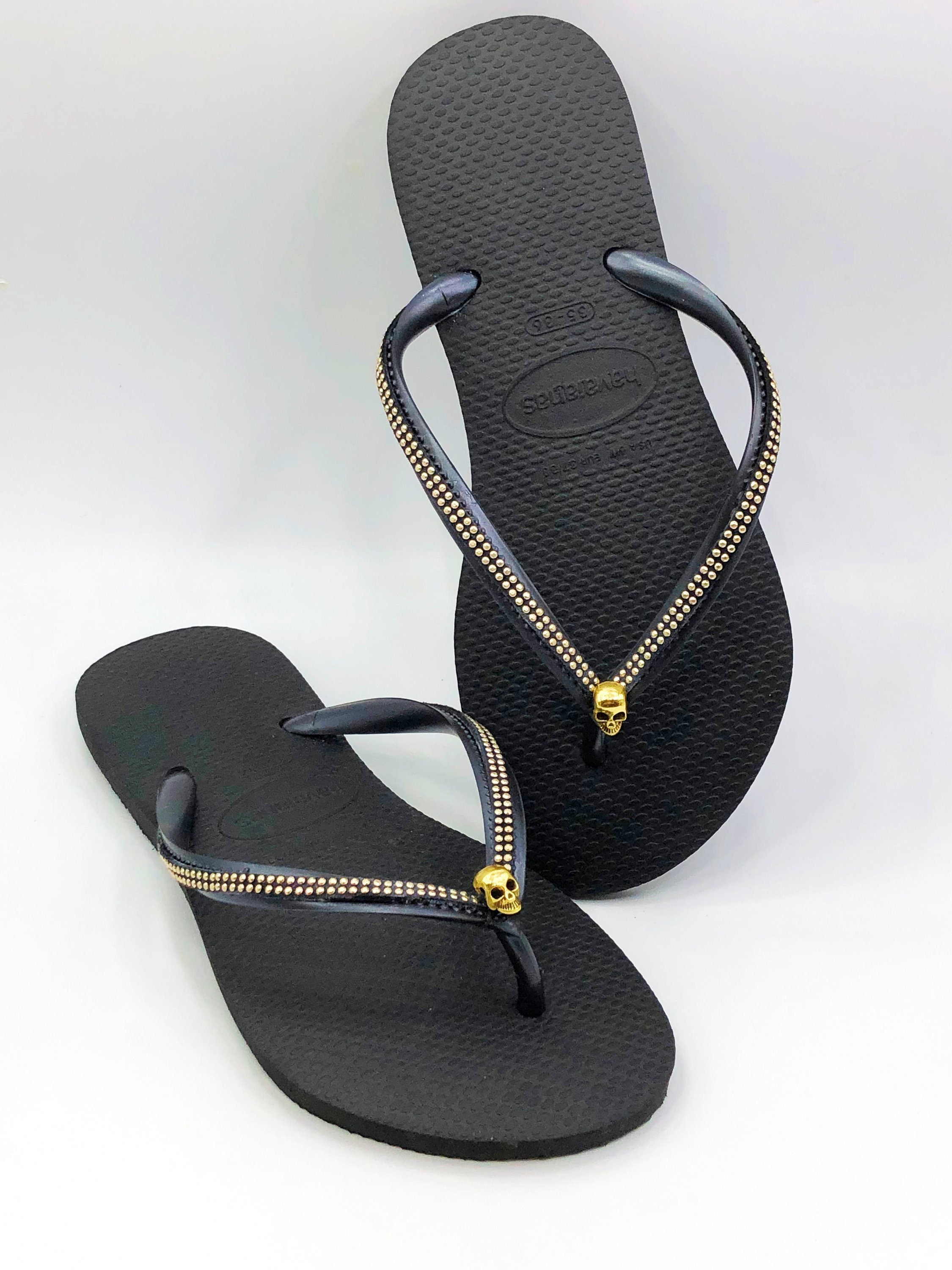 Skull Flip Flops, Gold Skull Sandals, Custom Flip Flops, Unique Fli...